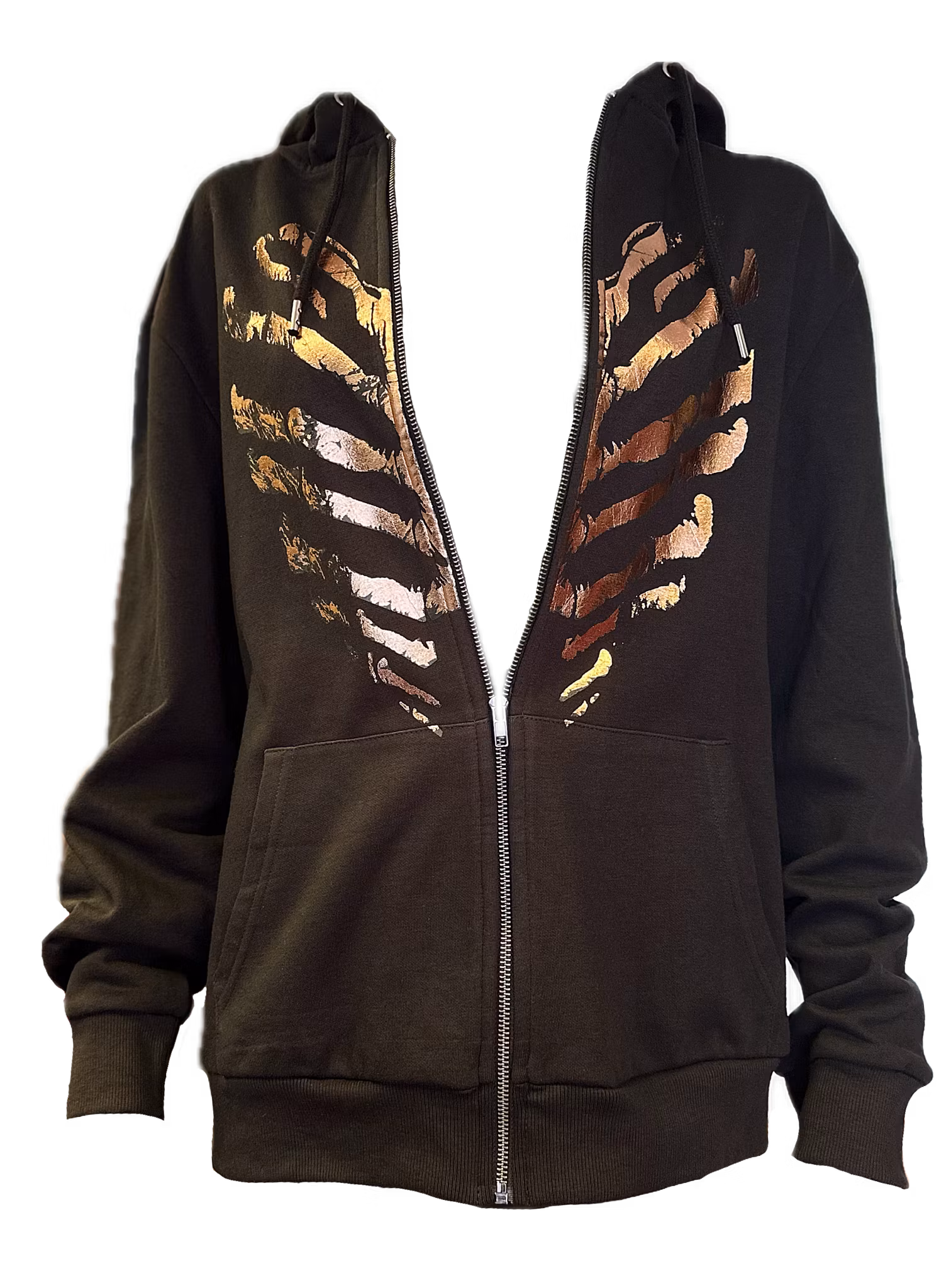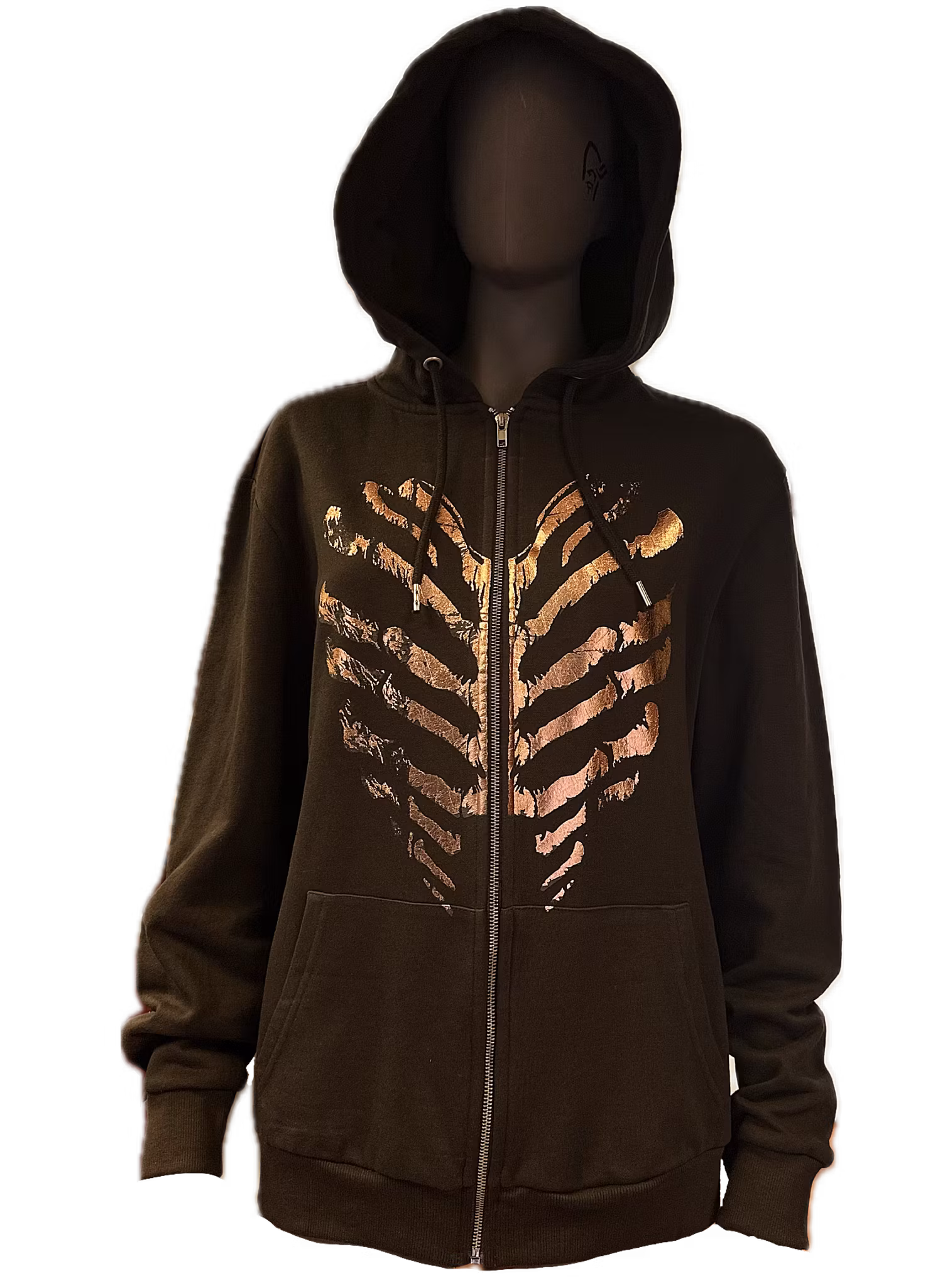 - Bold Aesthetic: Featuring a striking bronze rib cage print on the chest, this hoodie captures the essence of daring fashion. It's perfect for making a memorable impression, whether you're out in the city or attending a casual gathering.