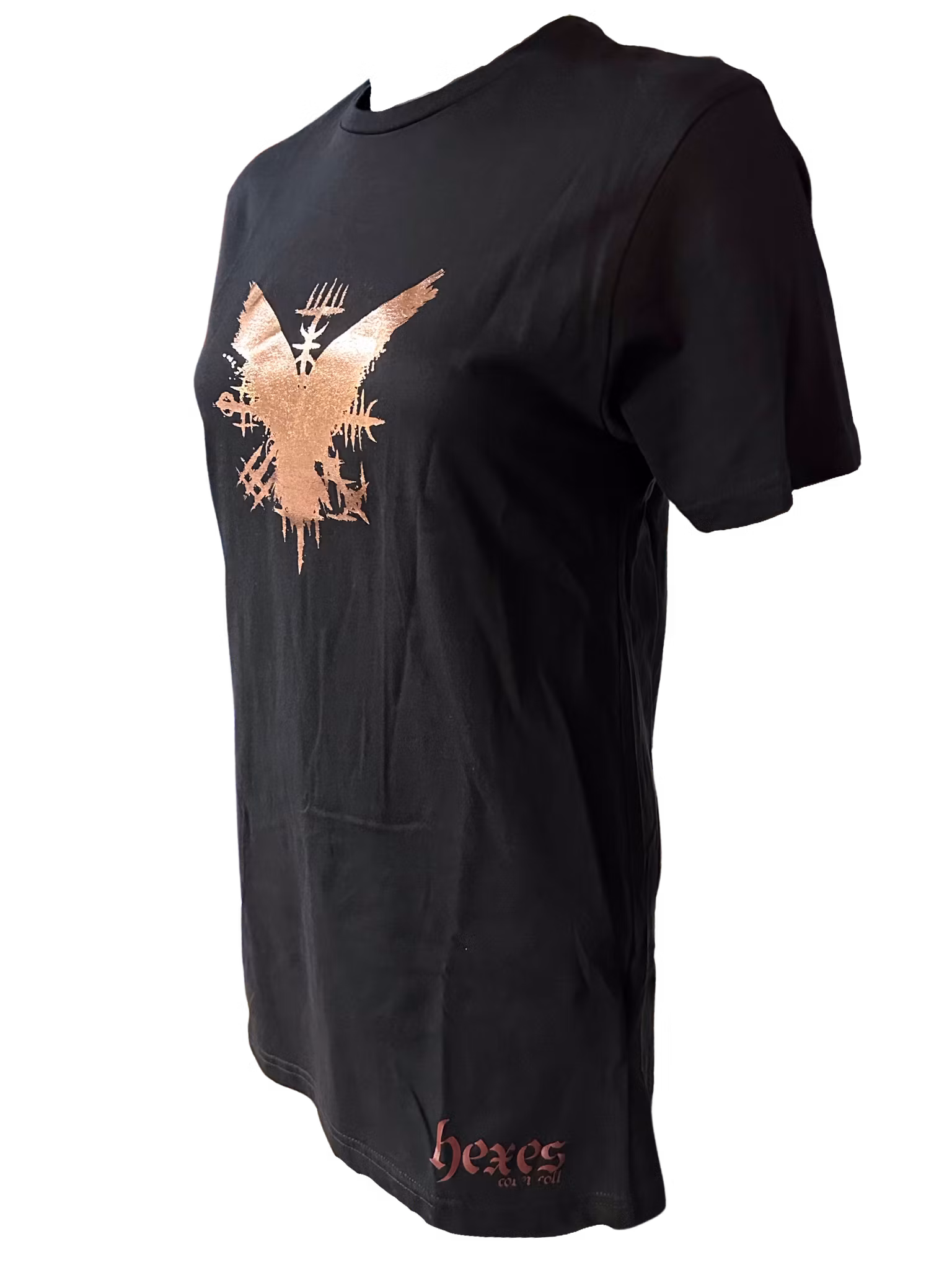 Striking Design: The raven and Vegvisir symbol are printed in a lustrous metallic copper, creating an eye-catching contrast against the deep black fabric. This unique design is either created or licensed by Hexes, ensuring authenticity and originality.